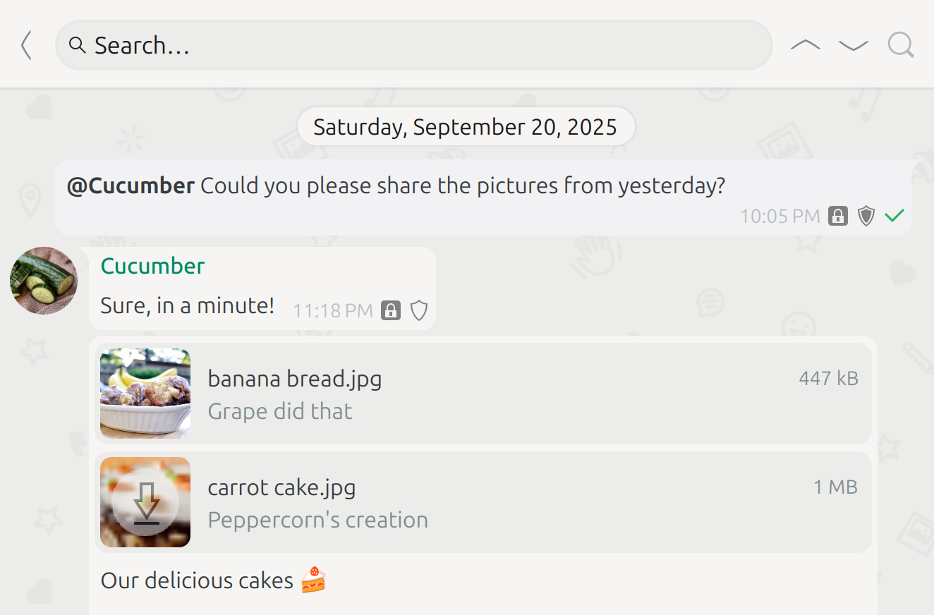 - Integrate search field into main toolbar increasing space for messages and, on mobile devices, even for chats in chat list (@melvo)